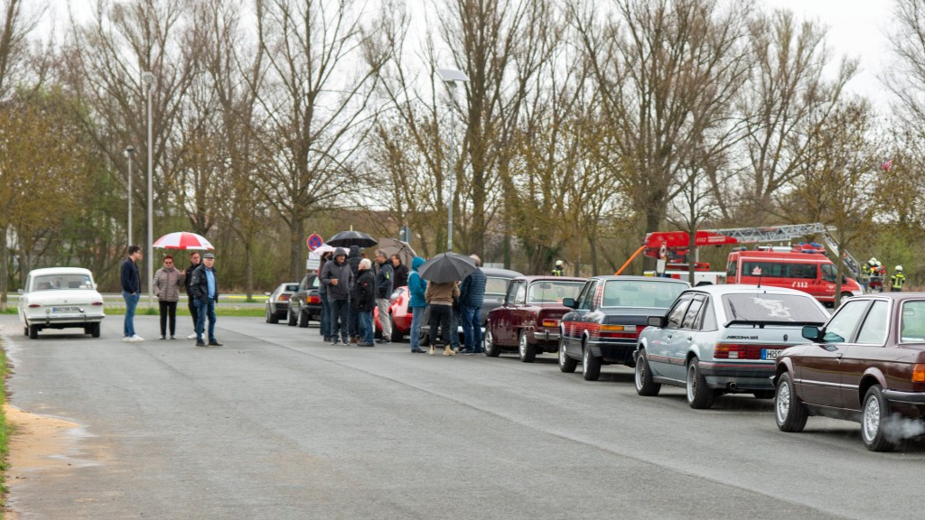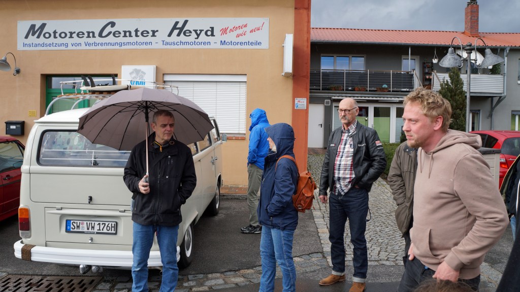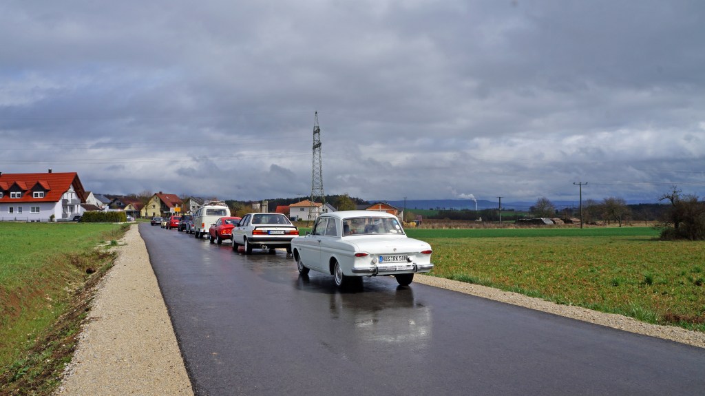 Obwohl uns der Wettergott zunächst nicht wohlgesonnen war fanden sich zum gemeinsamen Mittagessen über 70 Oldtimerfreunde ein. Anschließend setzte sich die Kolonne Richtung Bamberg in Bewegung. Am Ziel, der „Schrauberverbindung“, lachte dann auch die Sonne.